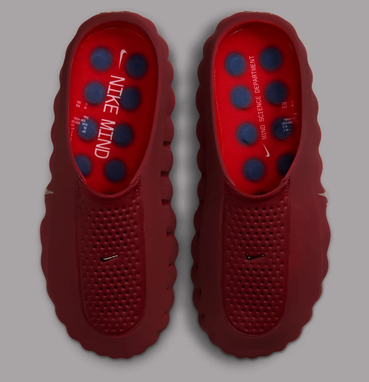 In recent years, Nike has increasingly explored the intersection of sport, science, and sensory design. With the forthcoming Nike Mind 001 “Team Red,” the company continues to expand this experimental territory, introducing a silhouette that departs from conventional performance footwear and instead focuses on mental and physical recovery. Scheduled to release in April 2026, the slip-on mule embodies the brand’s growing interest in neuroscience-informed product design—an approach that considers how footwear can influence mood, relaxation, and sensory perception.