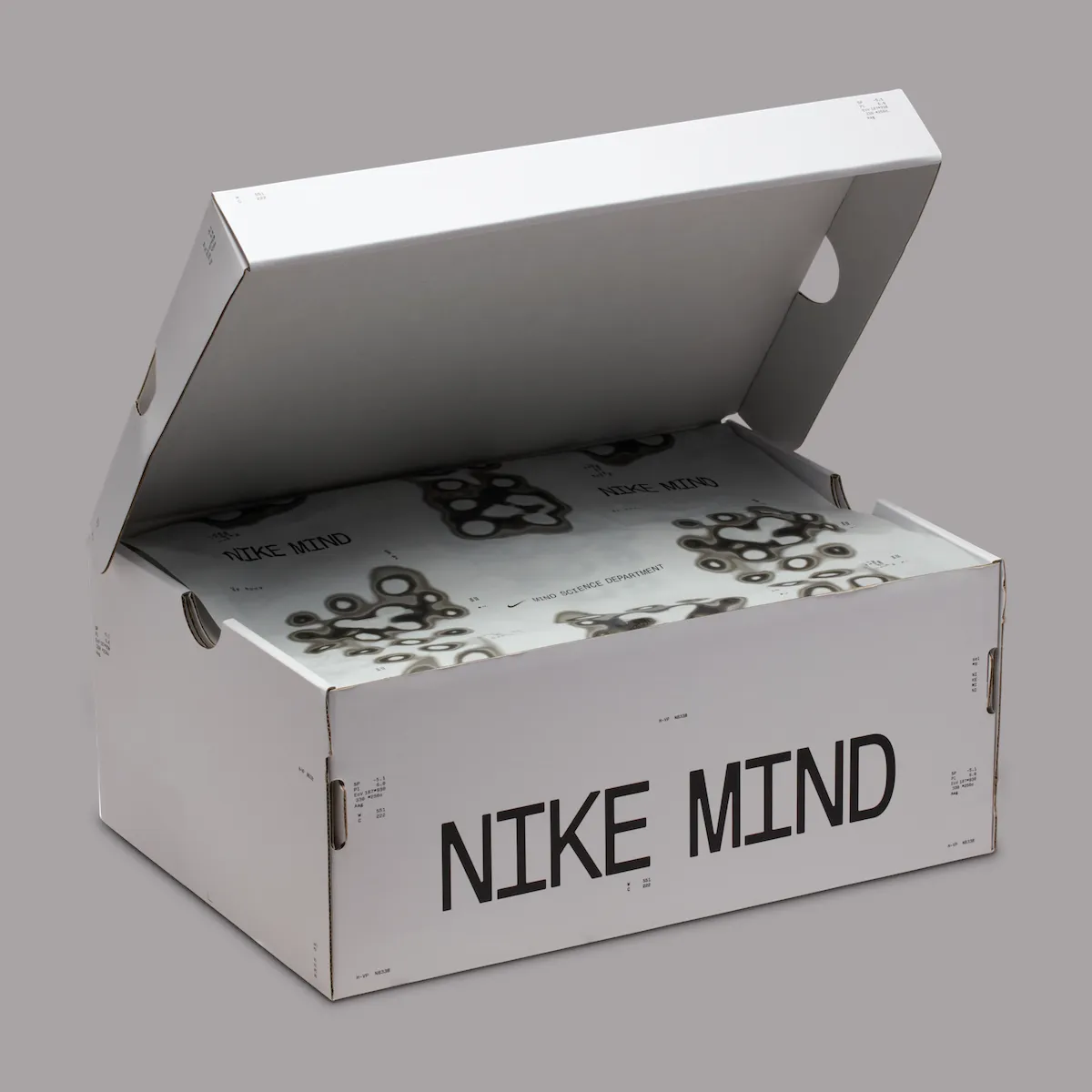 Despite its pared-down construction, the Nike Mind 001 carries a strong identity rooted in branding and conceptual storytelling. The interior footbed features the markings “Nike Mind” and “Mind Science Department,” reinforcing the narrative behind the project.
