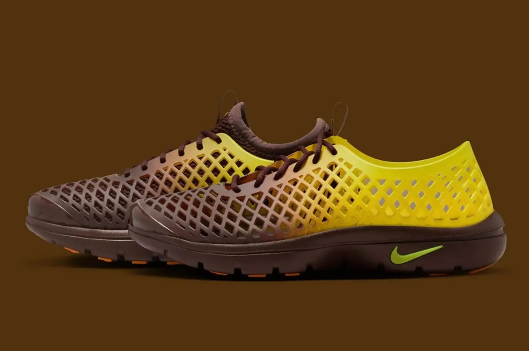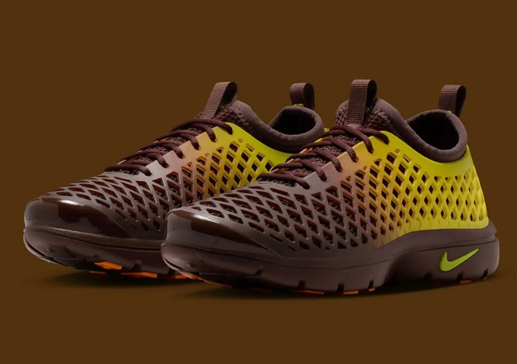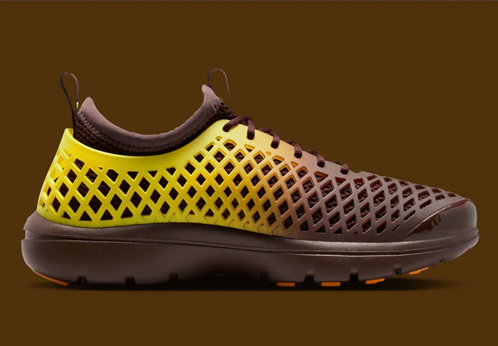 The smooth molded shell evokes early experiments with performance footwear, when designers explored new materials and structural forms. Meanwhile, the gradient color treatment reflects modern visual trends influenced by digital art and contemporary streetwear.