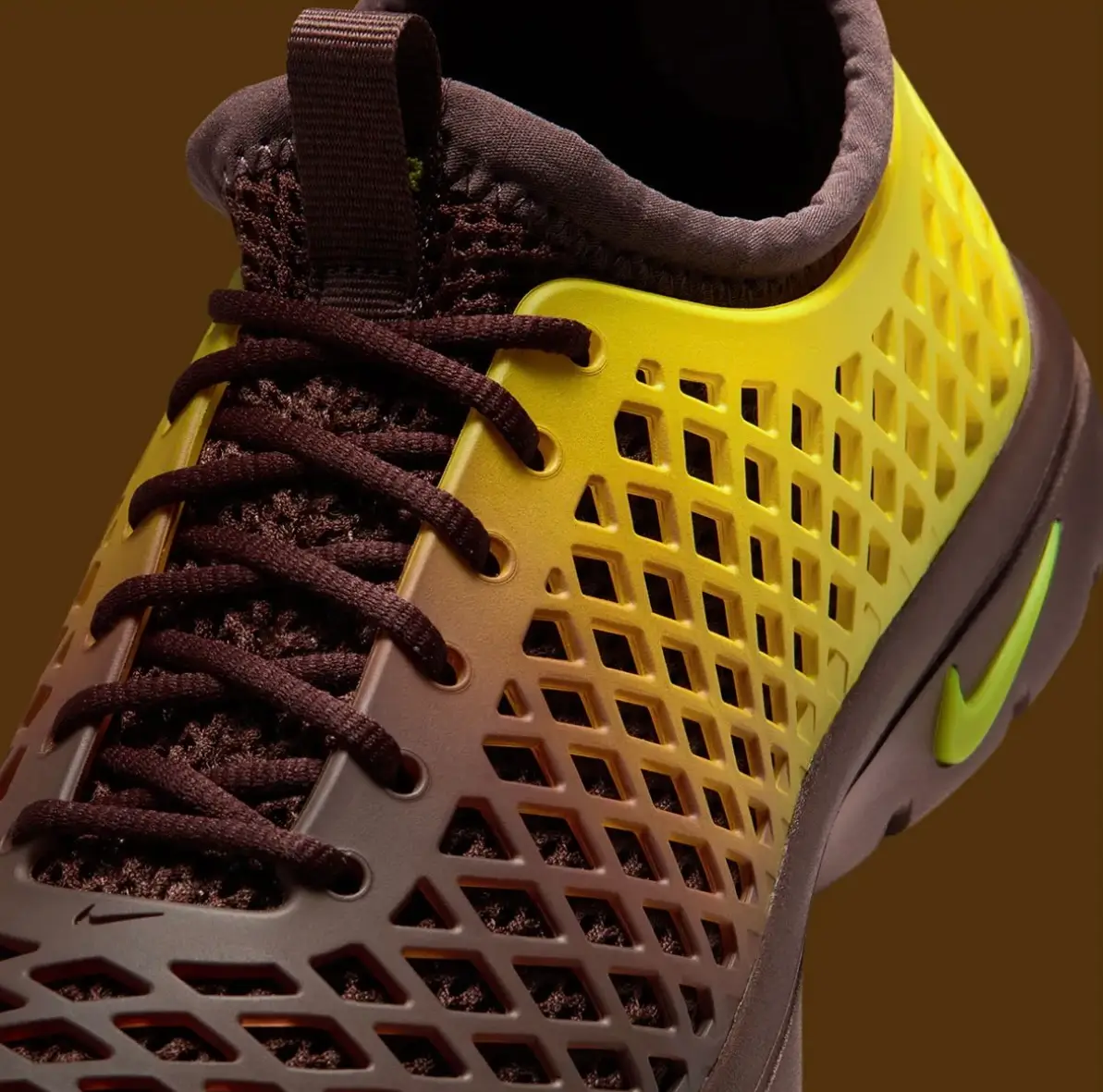 This shell acts almost like armor around the foot. Its smooth curves and aerodynamic lines give the shoe a futuristic appearance, reminiscent of concept footwear or industrial design prototypes. When combined with the gradient finish, the effect is striking—transforming the shoe into something that feels both retro and forward-looking.