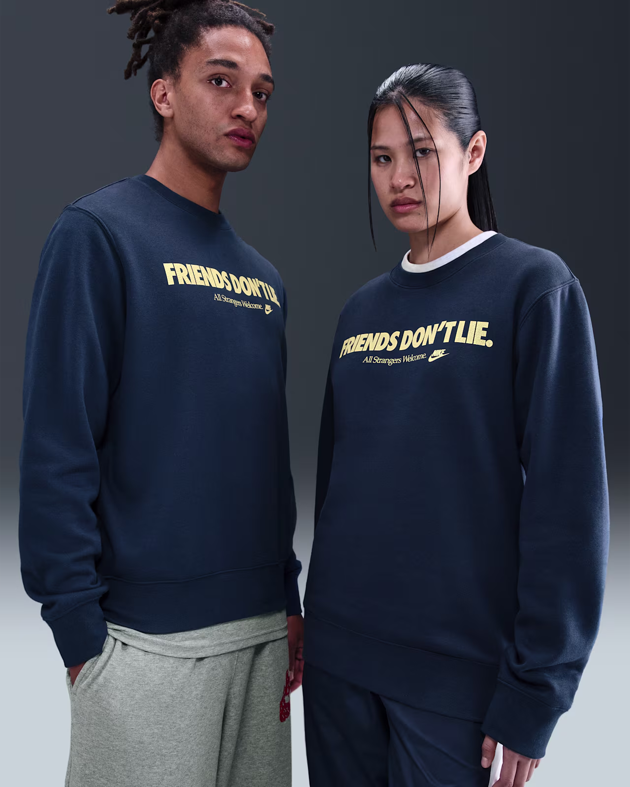 In the end, the Nike x Stranger Things men’s fleece crewneck succeeds because it captures a feeling: the thrill of vintage sportswear, the warmth of a favorite hoodie, and the eerie familiarity of a world just slightly off-balance. It’s athletic wear that tells a story—one stitched with nostalgia, mystery, and timeless design.