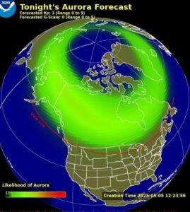 Tonight’s forecast gives a rare viewing opportunity to states typically too far south to see the Northern Lights. According to NOAA and supported by the Planetary K-Index, the following areas could see activity: