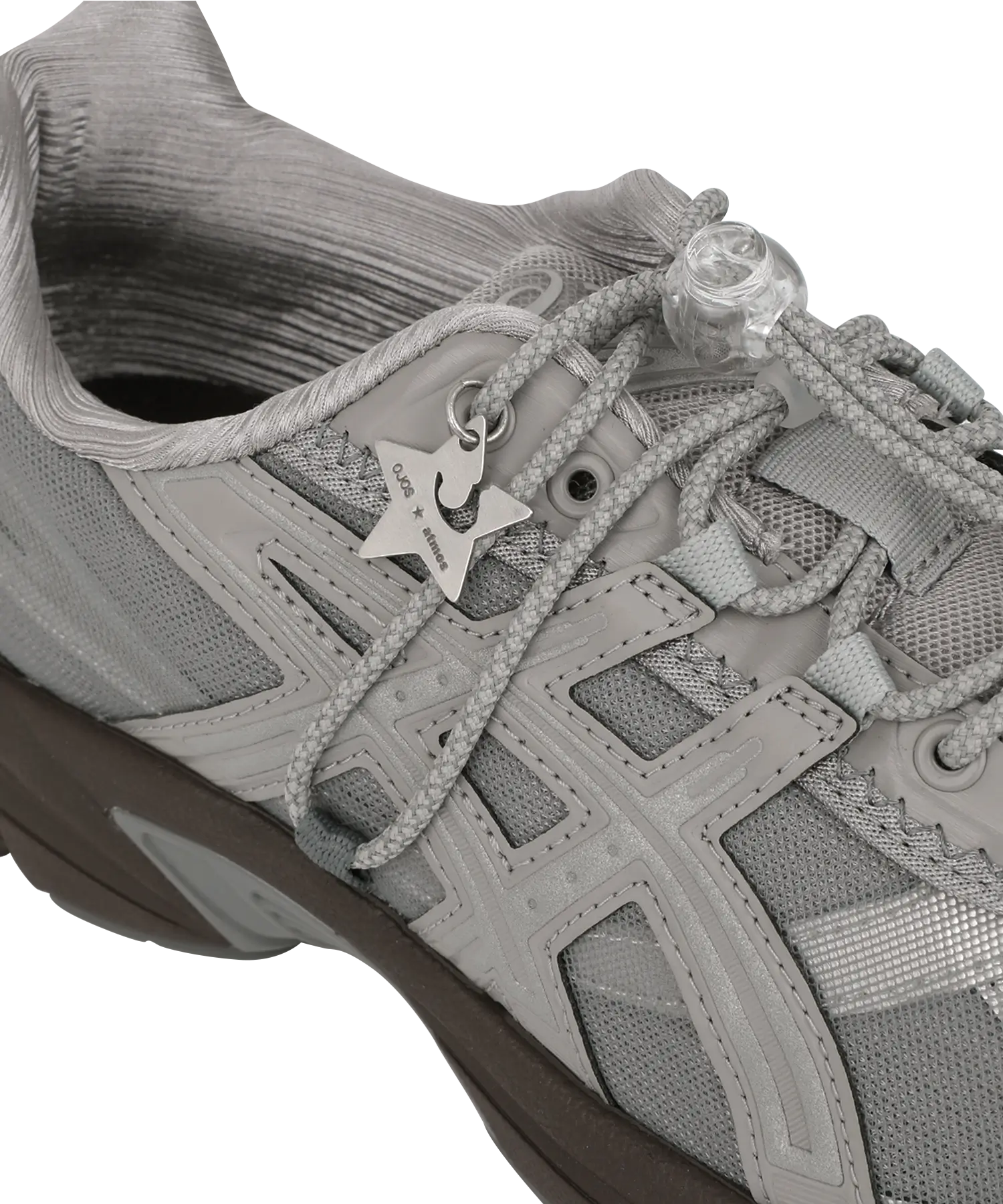 Much of the success lies in the materials. The GEL-1130 RE already features a mixed upper, but “Octo” introduces more tactility. Airy mesh sits beneath semi-transparent panels, allowing light to leak through and giving the upper a sense of movement. Some overlay pieces have a curved reflective trim, offering a flicker of shine at night. Soft heel padding builds a cocoon-like interior feel, and the tongue carries a subtle sculptural bulge — another OJOS signature.