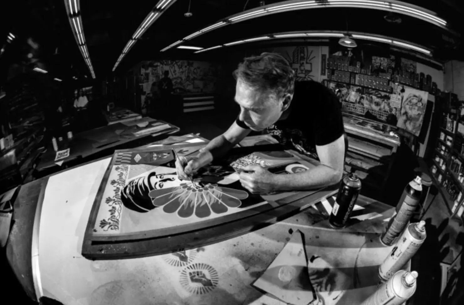 Fairey has long championed screen printing as both an artistic and political tool. The technique allows for the mass production of images—mirroring the democratic distribution methods of posters and protest graphics.