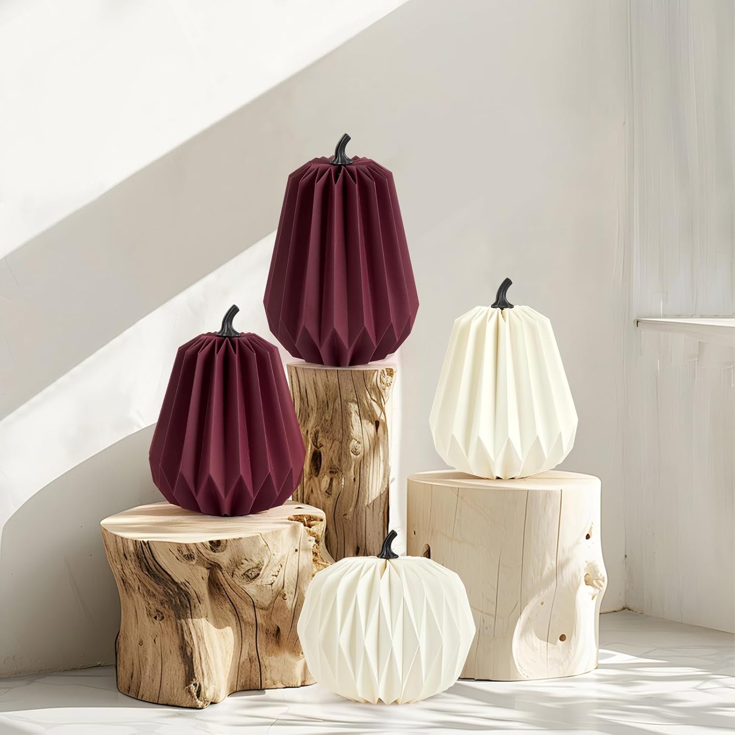 The 3D honeycomb design elevates these paper pumpkins beyond simple cutouts. Inspired by origami and accordion-fold techniques, honeycomb patterns create dimension and texture, transforming flat paper into sculptural art pieces. Whether in deep burgundy or creamy ivory, these pumpkins resemble geometric sculptures that feel both minimalist and festive.