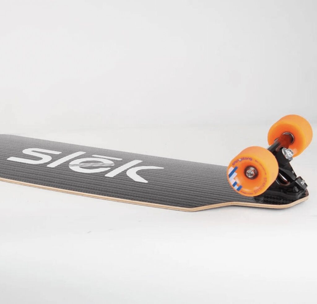 For the deck of the board, Slek uses a combination of materials that balance strength and flexibility, allowing riders to maintain control while carving or cruising. The trucks—those essential components that connect the wheels to the deck and allow the board to turn—are designed in-house, offering a unique geometry that enhances the board’s performance.