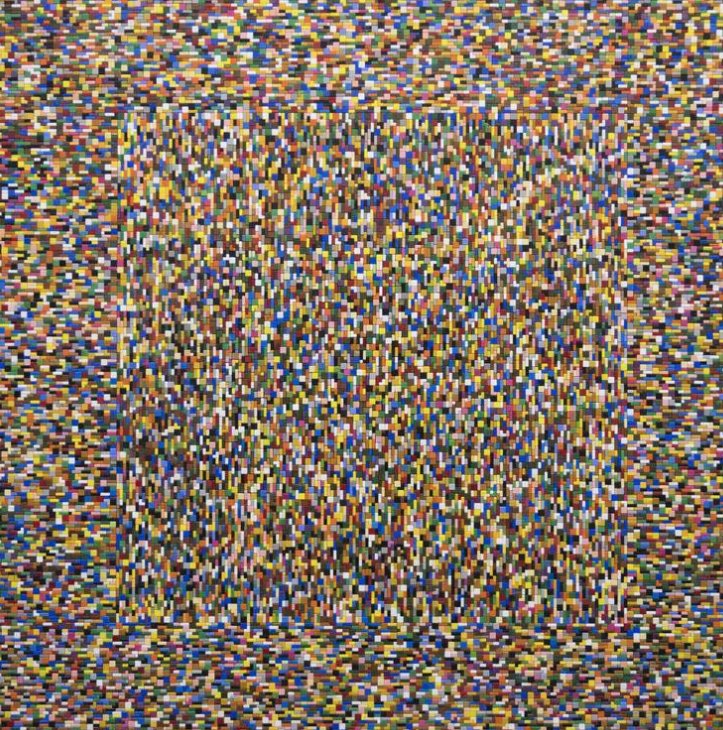 Pointillist Square isn’t just an artwork—it’s a conversation starter that explores the interplay between precision, randomness, and materiality, using Ministeck, a mosaic-like medium rarely associated with fine art.