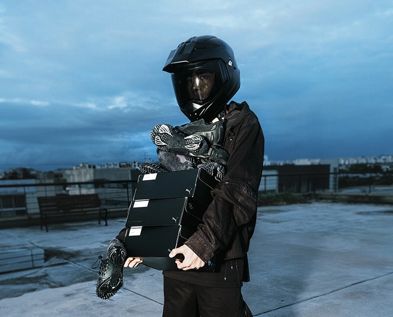 The new PUMA x San San Gear collection expands on the first partnership’s vision, exploring how form can evolve while remaining deeply rooted in technical aesthetics. The capsule introduces new iterations of two silhouettes — the Talon and the Mostro — alongside a concise apparel range and accessories that reflect a unified concept: stealth and adaptability.