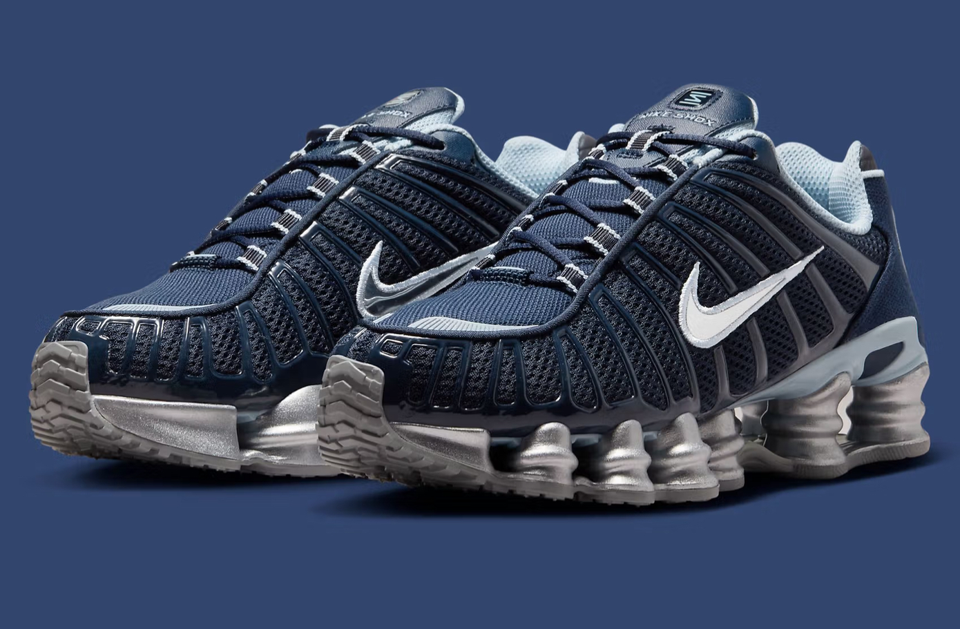 In 2025, the energy of the Shox TL no longer depends on performance metrics. Its value lies in its visual memory, in its audacity, in the way it sits at the nexus of retro-futurism and streetwear revival. This new colorway is a reminder that not all throwbacks need to shout. Some can whisper—through satin navy meshes, silvery synthetic cages, and the soft glint of metallic columnar shine.