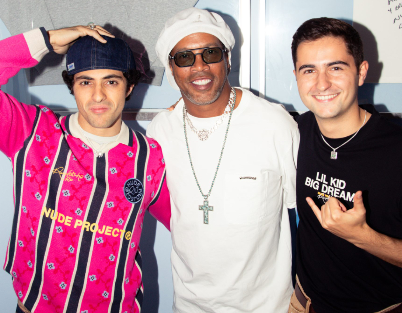 The scene was not your standard brand launch. No velvet ropes, no PR-manufactured press wall. Instead, it was Nude Project in its purest form: local, spontaneous, youthful, and loud. Hosted inside a minimalist studio space turned temporary community hub, the event promised nothing more than “a night to remember.” What fans got was something far more electric: Ronaldinho, walking through the door in a full Nude fit, grin wide, aura unmistakable.