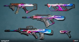Art direction is often an invisible force, but here it emerges clearly through the disciplined consistency of form language and color palette. Every Aeros weapon feels like it belongs to the same “family,” sharing DNA even as they fulfill different tactical roles.