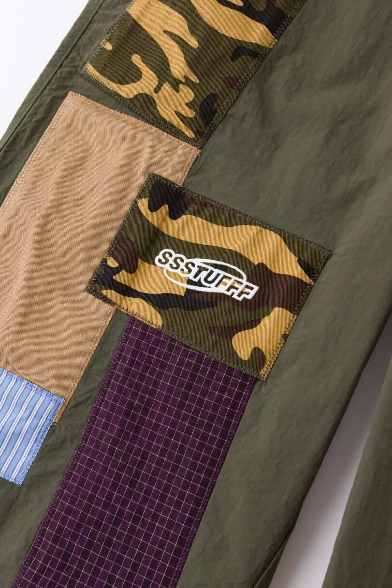 Even within the current design, there are subtle cues toward these alternate directions. The grid panel hints at a more technical future—one where SSSTUFF leans further into performance fabrics, into garments that straddle the line between streetwear and utilitarian gear. The striped panel suggests another path entirely, one that pulls from tailoring, from shirting traditions, from a softer, more domestic language.