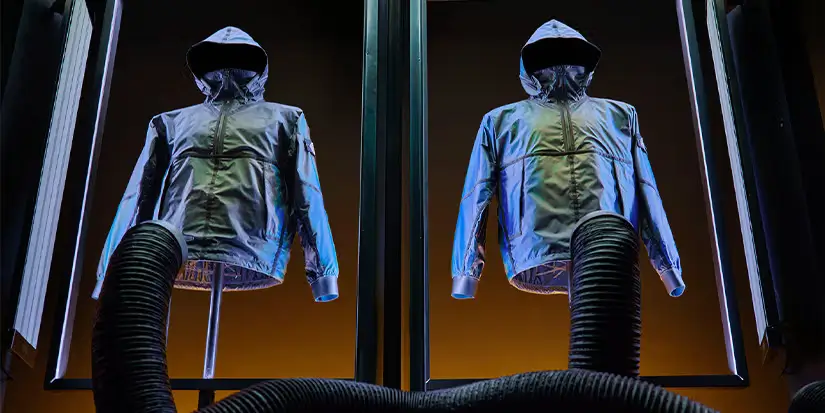Over the decades, the brand developed an archive of textile breakthroughs: reflective jackets, heat-reactive fabrics, monofilament nylon constructions, and bio-engineered materials. Each collection functioned like a field report from a laboratory dedicated to pushing clothing beyond conventional limits.