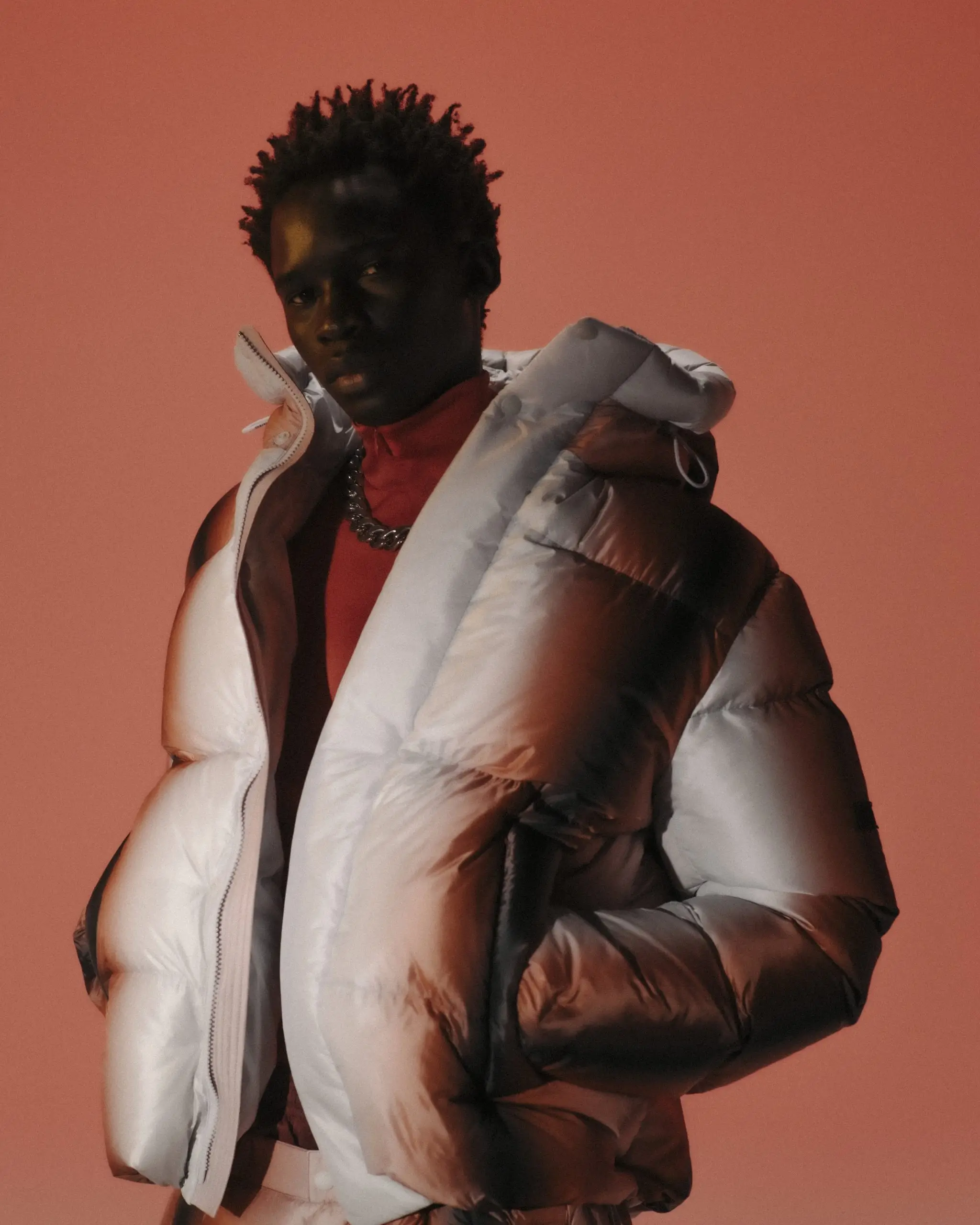 The brand’s design team treated layering as a metaphor for experience. Outer layers of quilted nylon conceal inner structures lined with fine wool, symbolizing the coexistence of strength and softness. Surfaces alternate between matte and gloss, a dialogue of old versus new, restraint versus reveal.
