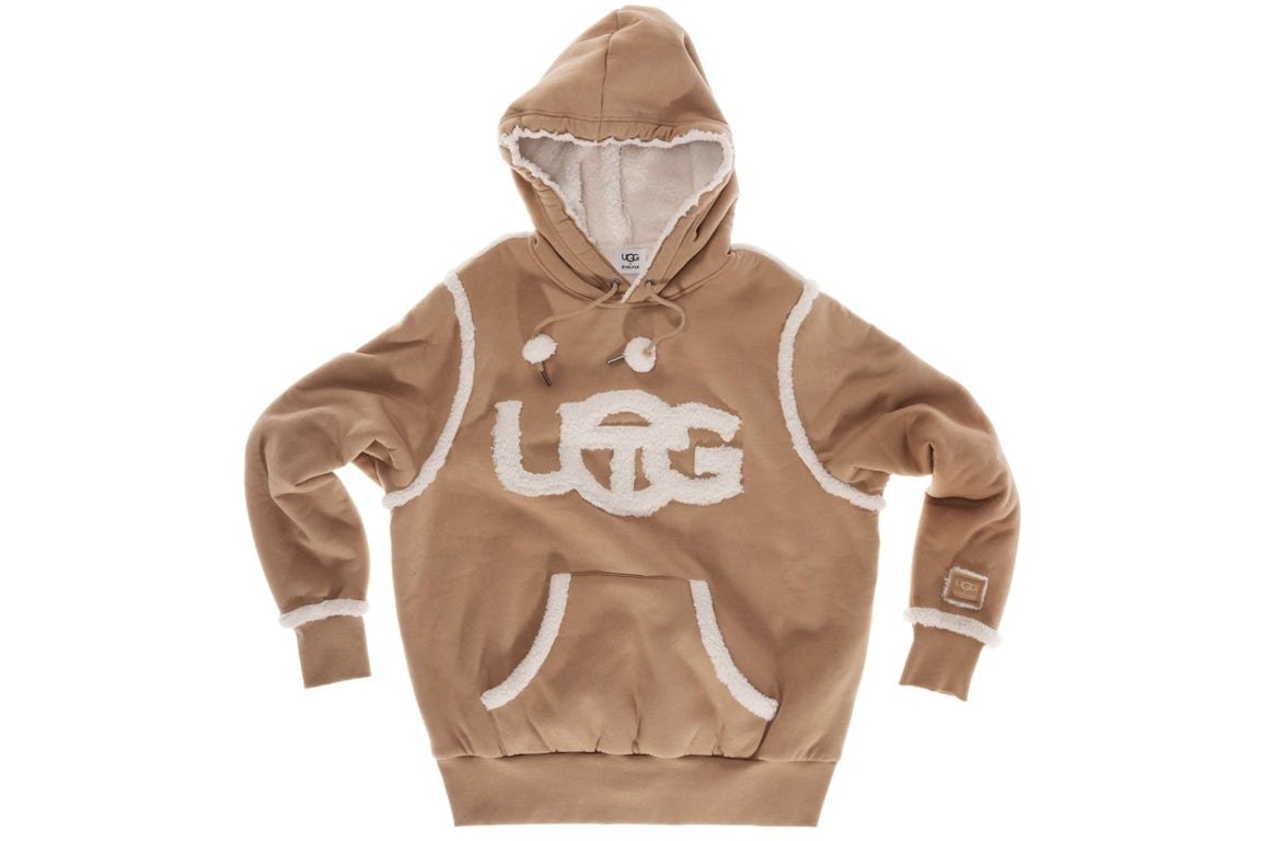 The hoodie is made from UGG’s signature shearling fabric, which provides unparalleled warmth and softness. The exterior is crafted from premium suede in a rich chestnut color, while the interior is lined with plush shearling for ultimate comfort. The attention to detail and high-quality materials ensure that the hoodie feels luxurious yet accessible.