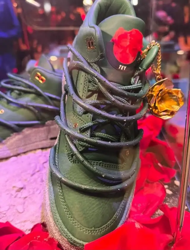 With the Air Jordan 3 project, the concept evolves. Rather than simply decorating the shoe with rose imagery, Taylor integrates the metaphor directly into the structure of the shoe. The design suggests a rose emerging from concrete — something fragile yet powerful breaking through the hardness of urban life.