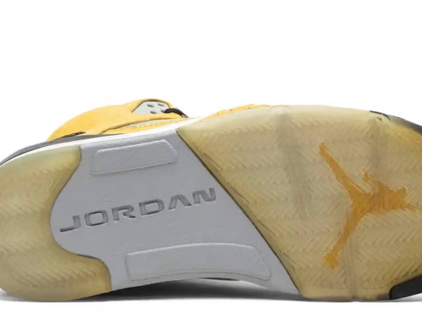 The design itself was impossible to ignore. Varsity Maize suede draped the uppers in a color so loud and commanding it could stop traffic. Wolf Grey accents on the tongue and netting balanced the palette, while a black midsole with speckled shark teeth added depth and contrast. The crowning detail, of course, was the kanji-style ‘23’ stitched into the lateral heel, modeled after Tokyo’s ward insignia.