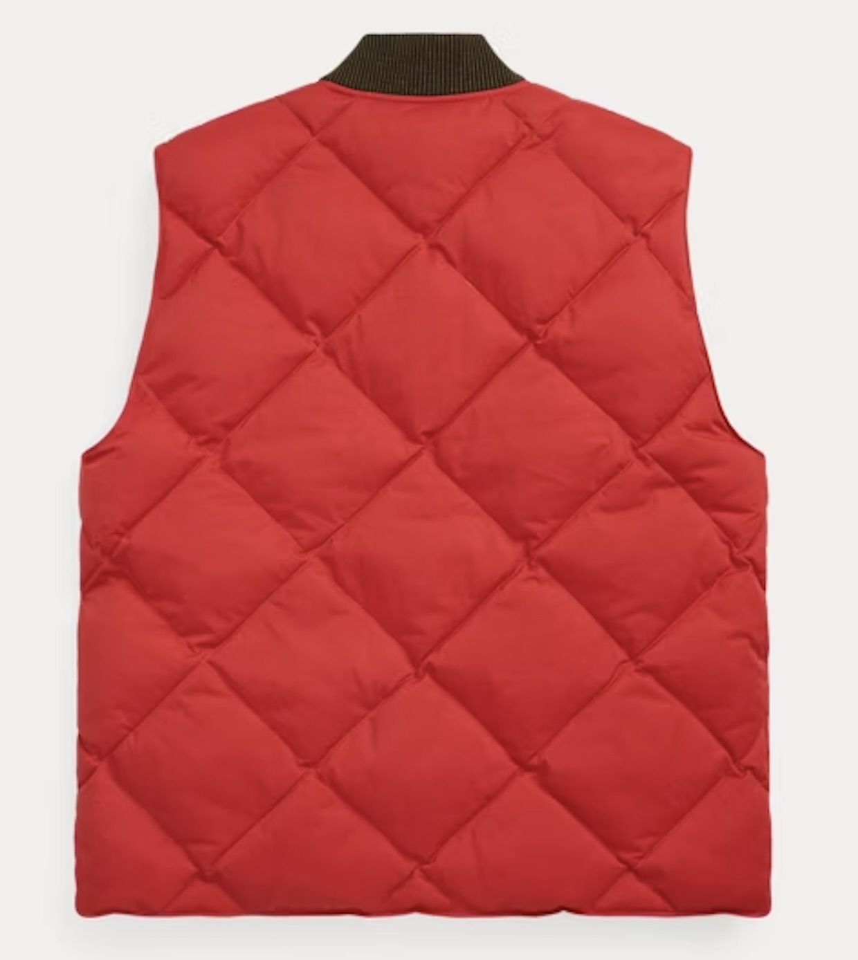 Yet here, transplanted onto rugged outerwear, the detail reads differently. It adds warmth and structure to the neckline, insulating against cold winds while softening the vest’s utilitarian edge. The collar is not purely nostalgic—it exemplifies Double RL’s design philosophy: the blending of workwear and sportswear, ruggedness and refinement.
