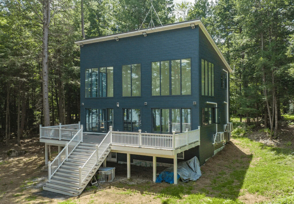 In Harrison, Maine, on the slender spine of Zakelo Island—one of the most secluded spits of land stretching into the clean waters of Long Lake—there now sits a box. Not a house with a boxy style. Not a cabin with clean lines. A box. Big, unapologetic, and unblinking. It is one of only six homes permitted on this tiny island, and it doesn’t so much sit in the landscape as it defies it. A brutalist monument to modern convenience, standing in hard-edged contrast to the softened grace of Maine’s natural splendor.