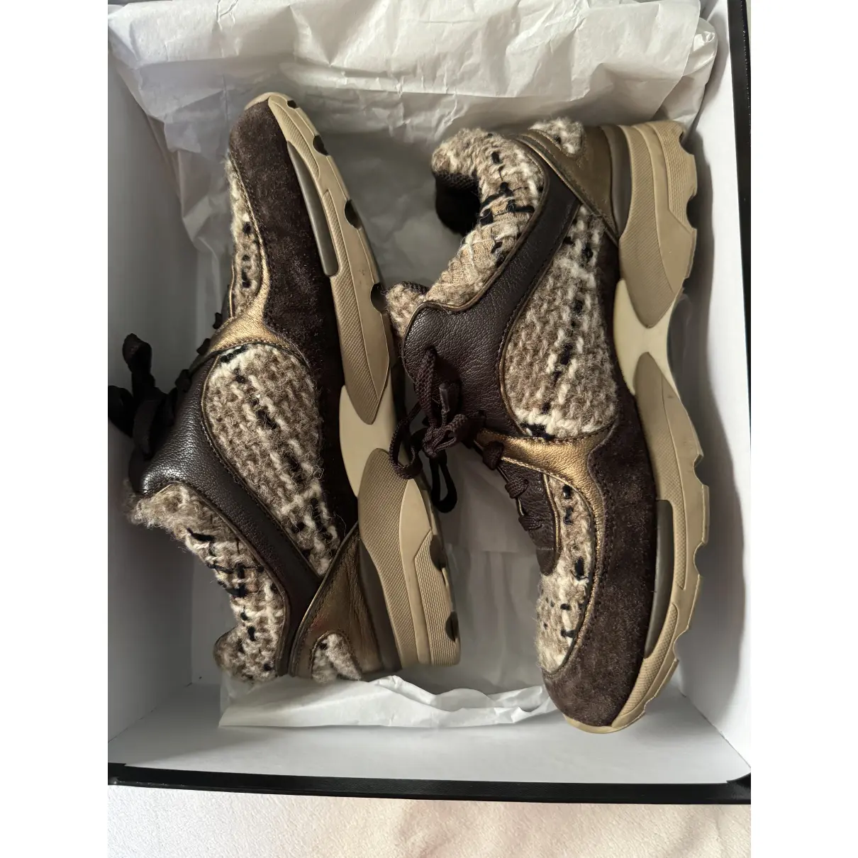 The choice of tweed in these trainers speaks to the fusion of haute couture and streetwear, a combination that has become increasingly popular in recent years. By using a fabric traditionally associated with formalwear, Chanel elevates the concept of trainers, making them suitable not just for casual outings but also for more polished settings. The juxtaposition of this luxury material with the sporty silhouette of trainers creates a striking visual contrast that appeals to both fashion-forward individuals and those with a love for classic style.