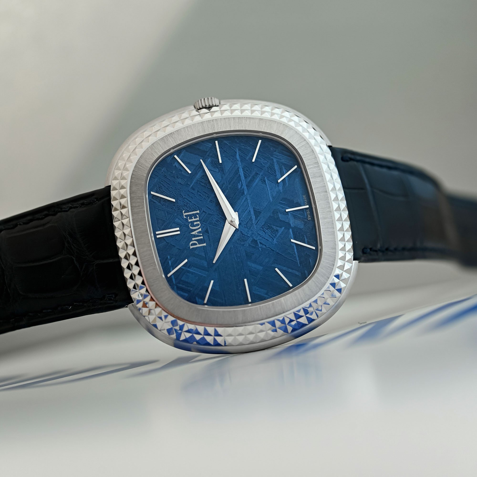 One of the major talking points about the Andy Warhol Clou de Paris watch is its detailed design. The Clou de Paris motif covers the dial with a series of engraved, miniature square pyramids, lending the watch a structured, almost architectural feel. This motif complements the Black Tie collection’s classic round shape, though it diverges from traditional Piaget simplicity by adding a layer of visual intrigue. The geometric precision nods to the architectural and repetitive aspects of Warhol’s work, especially his fascination with structured patterns in series.