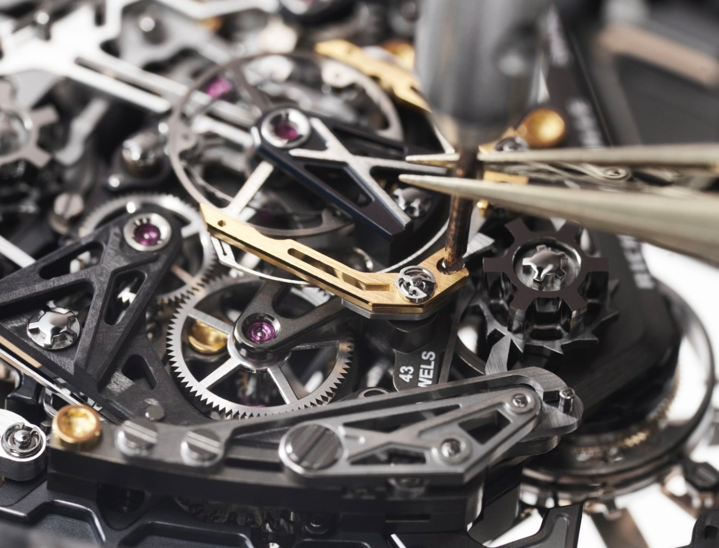 A rattrapante (split-seconds) chronograph is not simply a stopwatch; it’s a strategy instrument. By layering a secondary seconds hand coaxial to the main chronograph hand and allowing it to stop independently while the primary keeps running, you can capture lap splits, intermediate times, or the delta between two cars that left the pit wall together. In motorsport terms, this is the difference between seeing motion and measuring race craft. The RM 43-01’s pusher feel—short travel, positive clicks—reflects the brand’s obsession with tactile fidelity. And because energy loss is the enemy of chronometric performance, the rattrapante clamping system and heart-cam geometry are tuned to minimize parasitic drag when the split hand rejoins at speed. (That detail—how quickly and cleanly the hands recombine—separates a merely complicated chronograph from a competition-grade one.)