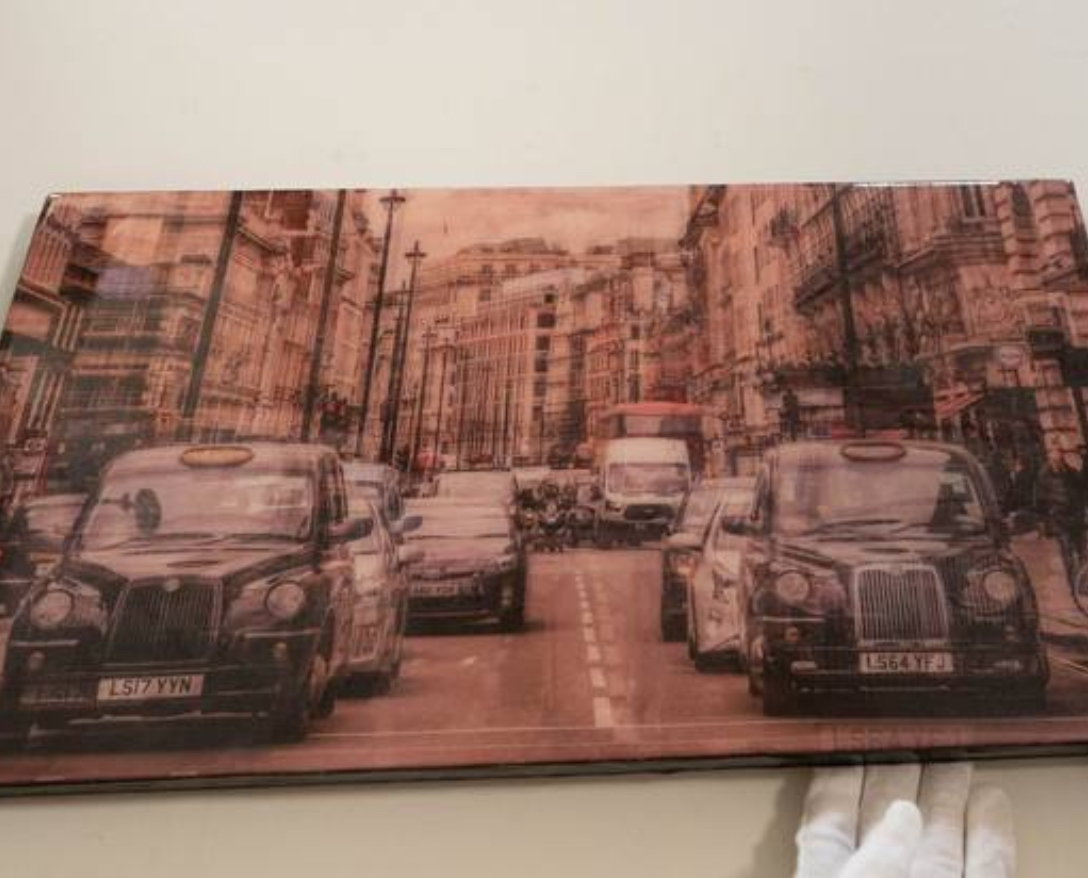 Tokano’s exhibitions in London have been met with critical acclaim. His ability to reinterpret urban landscapes through layered textures and abstract compositions has struck a chord with collectors and critics alike. His work “London,” a mixed-media masterpiece, exemplifies his approach. The piece captures the essence of the city using acrylic, photograms, resin, and gesso on wood, creating a dynamic interplay of light, shadow, and form.