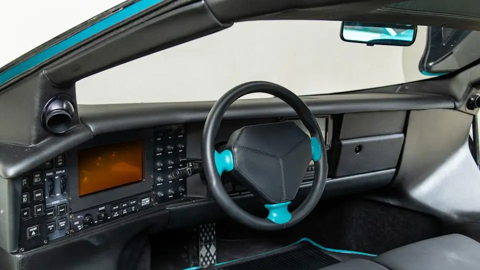 Rather than traditional analog gauges, the dashboard featured digital instrumentation, a rarity in high-performance vehicles of the era. Multiple displays presented engine data, speed information, and system diagnostics in a format reminiscent of aircraft monitoring panels.