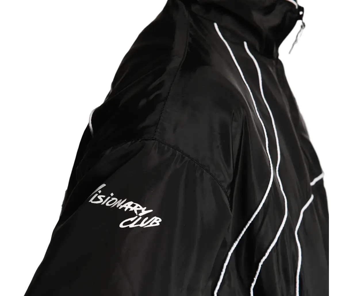 The track jacket carries historical associations with sport, performance, and leisure. Visionary Club does not discard these associations, but it abstracts them. The emphasis is no longer on athletic function, but on the aesthetics of movement.