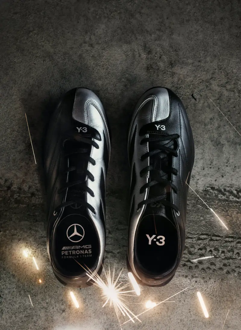 The motif’s lineage traces back to the 2006 adidas F50 Tunit football boots, a silhouette synonymous with modular innovation and aggressive performance design. By resurrecting this visual language, Y-3 establishes continuity between eras of sport—bridging football’s kinetic explosiveness with the hyper-precision of Formula One.