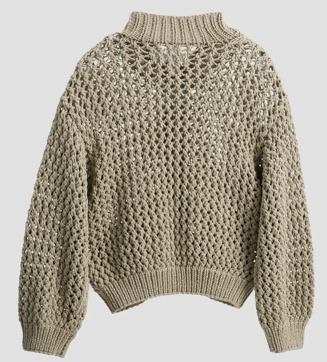The enlarged gauge transforms the knit into a visible system. Each loop, each opening, each intersection is legible. Nothing is concealed. The construction becomes the aesthetic.